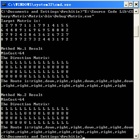 MinCost=" + Step(direction, matrix, MATRIX_X, MATRIX_Y, MATRIX_X - 1, MATRIX_Y - 1));