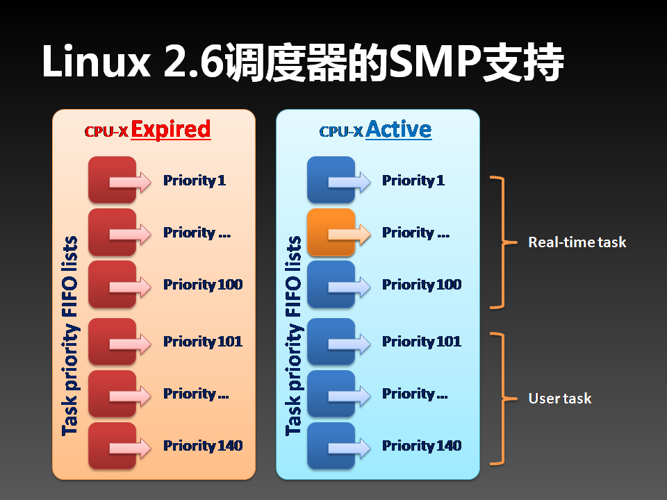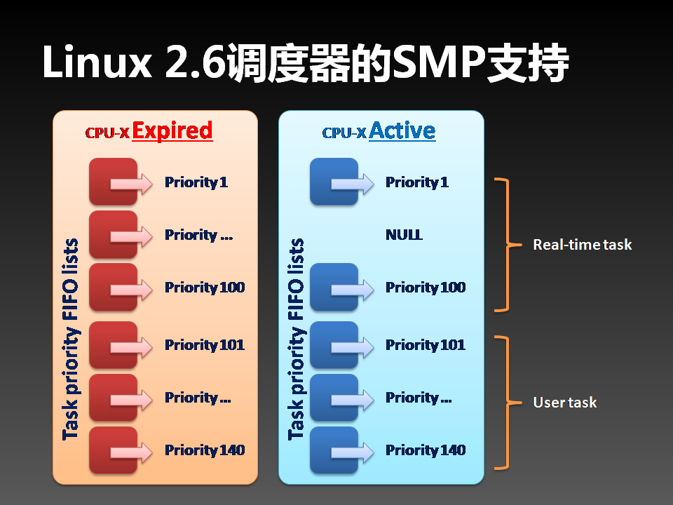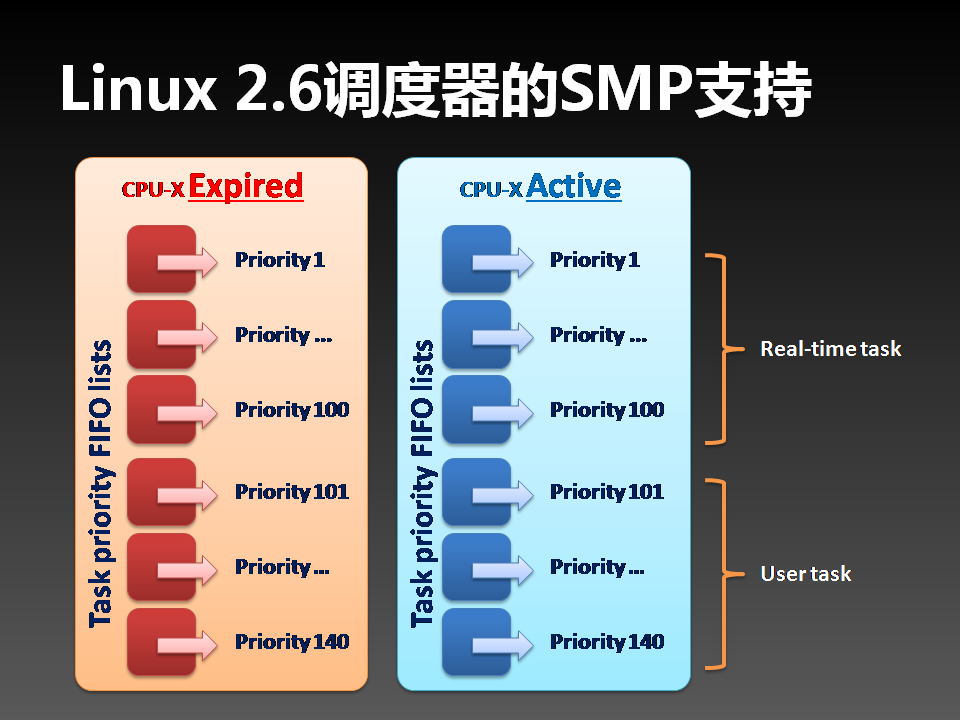 2.6 Linux每个CPU使用一对任务队列进行CFS调度。