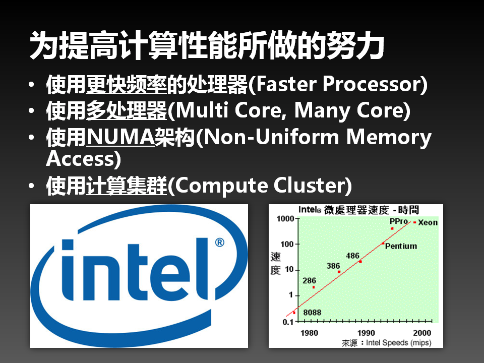 为了实现高性能计算,使用过很多种方法。