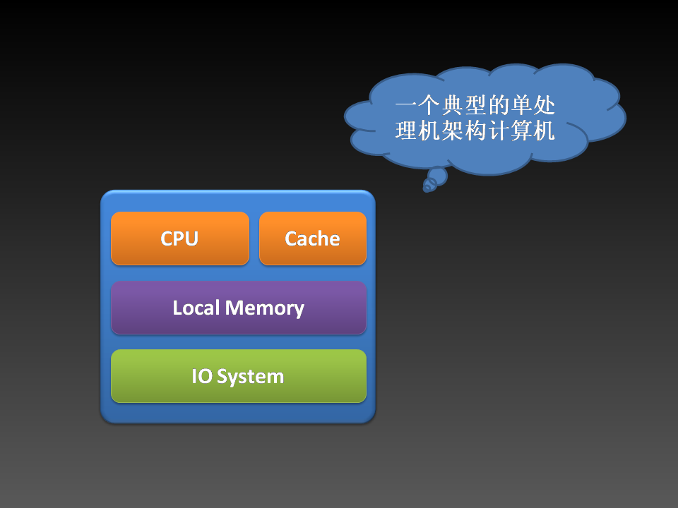 这是多年以来典型的单处理机架构。在这种架构上,提升主频能够显著改善程序执行速度。