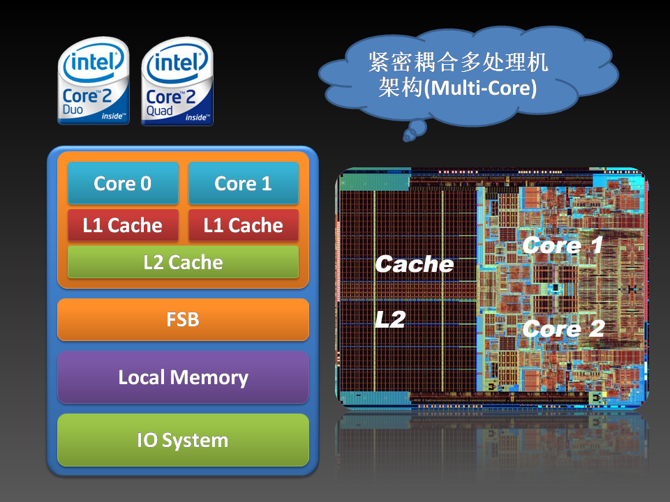 这是Intel Duo Core架构,也是一种紧耦合SMP。