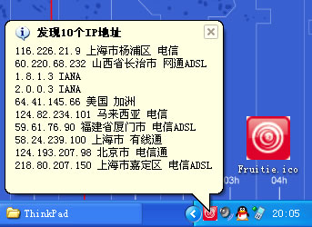 - 2008年04月11日:发现NotifyIcon的ShowBalloonTip呈现的Balloon好像有字数限制,改成超过10条IP会弹框显示。修正一处可能崩溃的bug。