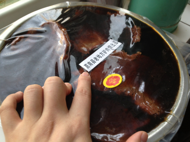 驴肉,一大盆。天气寒冷,已经冻成了肉冻。